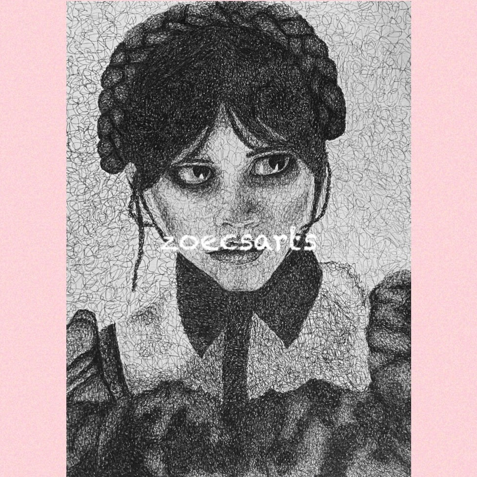 My original artwork ’GOO GOO MUCK’ biro on paper inspired by Netflix’s ‘wednesday’